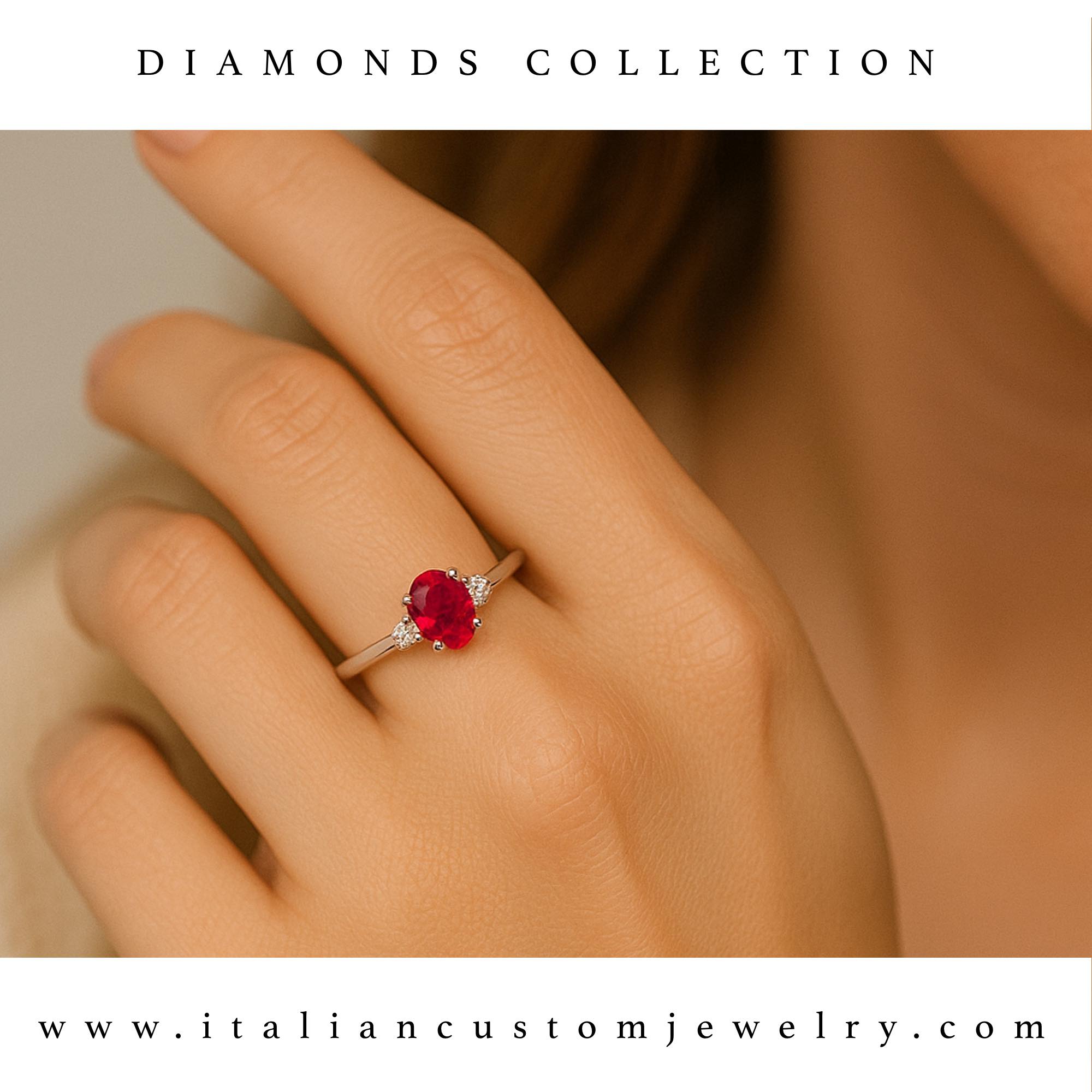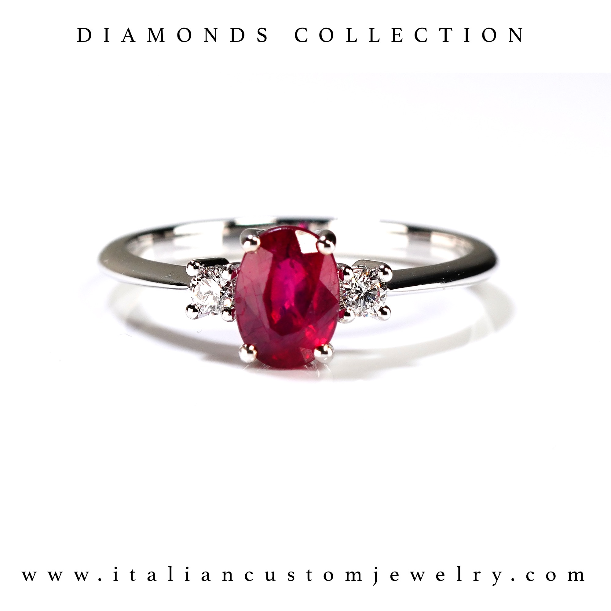 Un meraviglioso anello completamente realizzato a mano in Italia con rubino Ovale sintetico e diamanti bianchi naturali L’anello è stato realizzato all’interno dei nostri laboratori e viene corredato di packaging e certificato di garanzia. Per ulteriori info contattateci. Realizzeremo da remoto il controllo dei diamanti con microscopio e detector diamanti naturali. La dimensione della pietra centrale potrebbe essere diversa rispetto a questa immagine, contattaci prima per maggiori informazioni. Tempi di spedizione entro 5 giorni lavorativi.