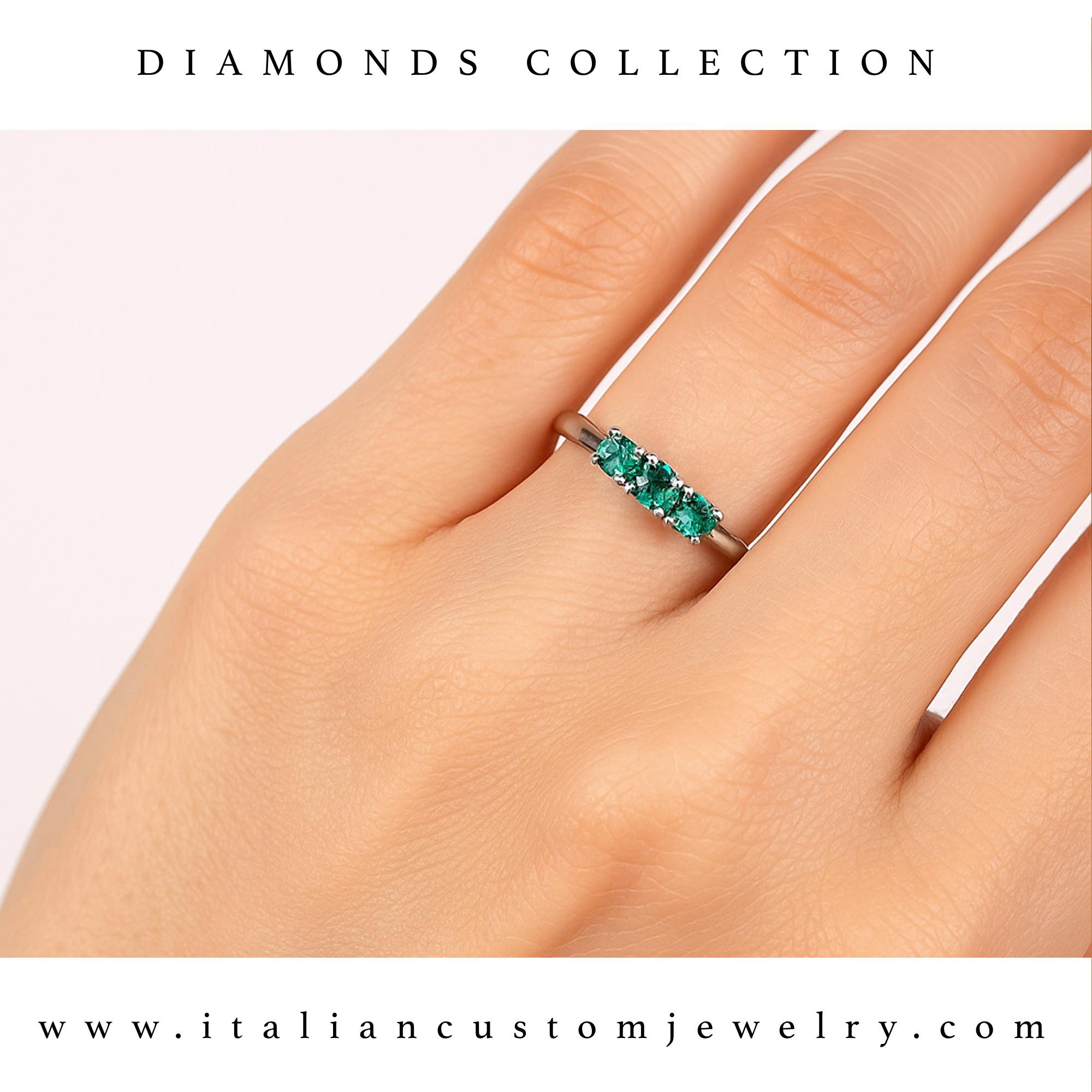 Un meraviglioso anello completamente realizzato a mano in Italia con smeraldi naturali incastonati. L’anello è stato realizzato all’interno dei nostri laboratori e viene corredato di packaging e certificato di garanzia. Per ulteriori info contattateci. Realizzeremo da remoto il controllo dei diamanti con microscopio e detector diamanti naturali. La dimensione della pietra centrale potrebbe essere diversa rispetto a questa immagine, contattaci prima per maggiori informazioni. Tempi di spedizione entro 5 giorni lavorativi.
