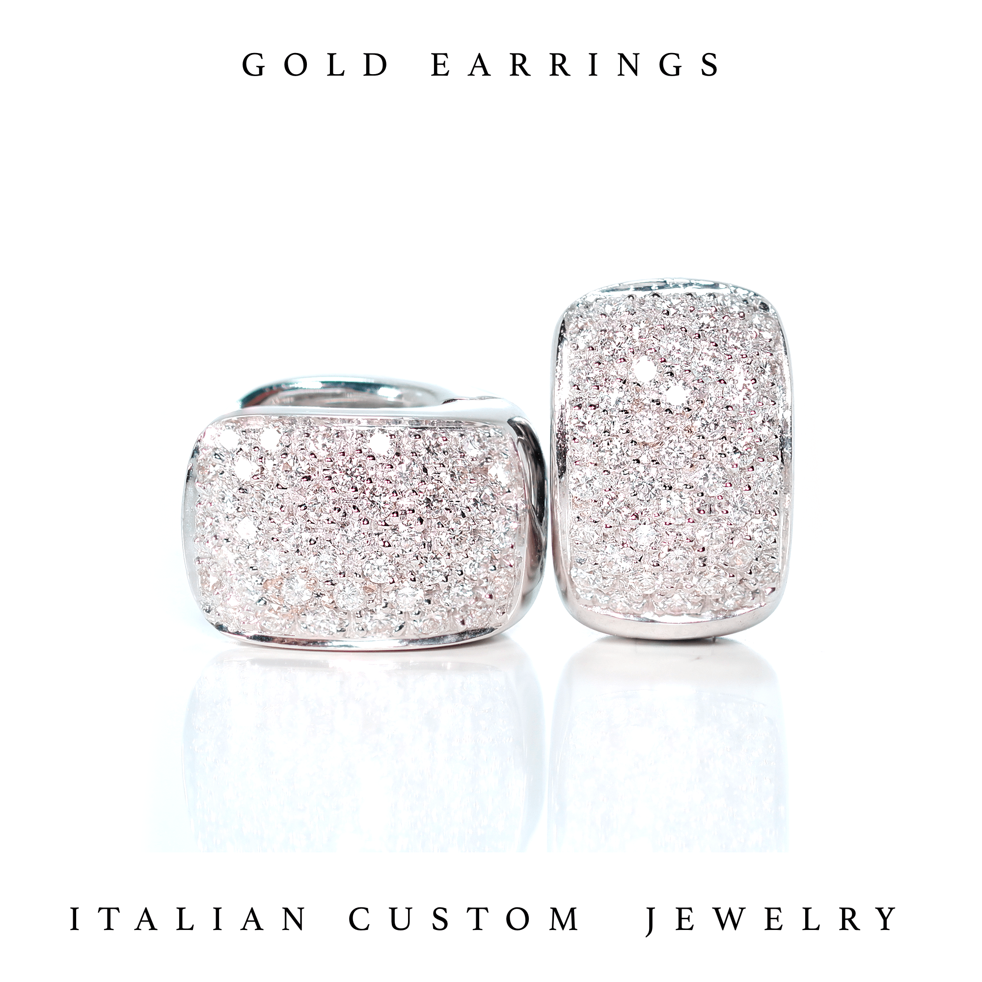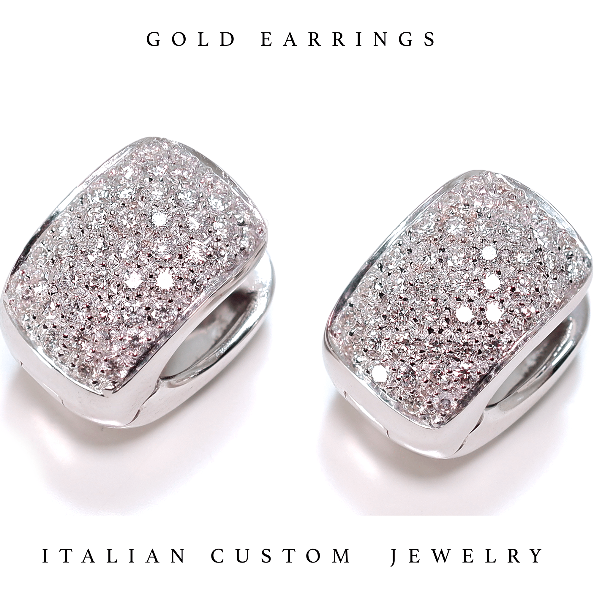 Una bellissima coppia di orecchini completamente in oro bianco e diamanti naturali, realizzati in italia dalla Gioielleria Appolloni Roma. Il gioiello è adatto a uomo e donna con la possibilità di personalizzare il prodotto previa richiesta. .
