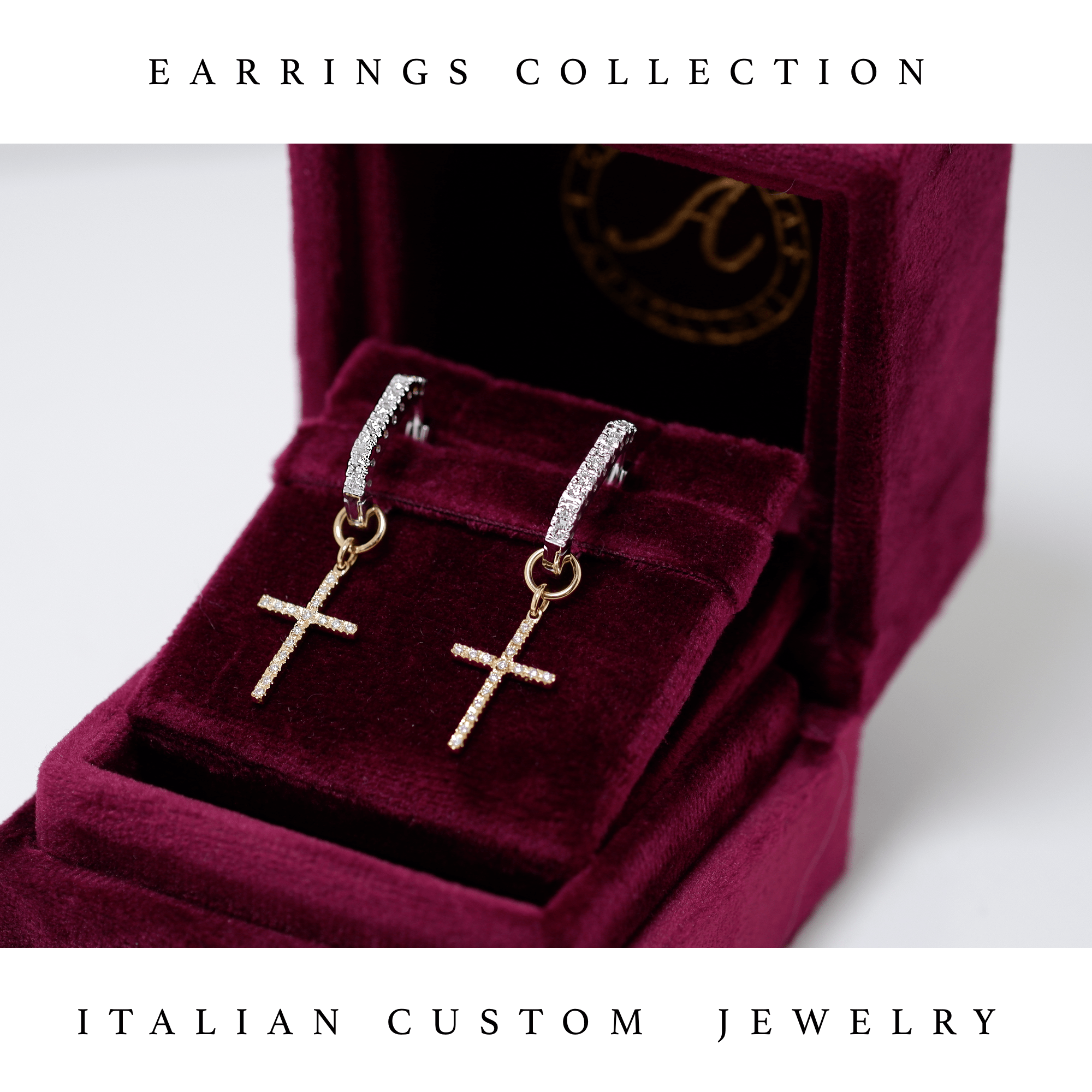 Una bellissima coppia di orecchini completamente in oro bianco e diamanti naturali, realizzati in italia dalla Gioielleria Appolloni Roma. Il gioiello è adatto a uomo e donna con la possibilità di personalizzare il prodotto previa richiesta. La croce si può rimuovere facilmente con la possibilità così di variare l’aspetto degli orecchini. .